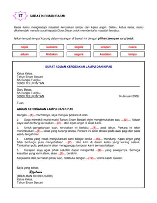 Surat kiriman rasmi aduan kerosakan kemudahan awam prasekolah surat kiriman rasmi aduan kerosakan kemudahan awam di surat kiriman rasmi aduan kerosakan. Pengunaan kiasan tidak digalakkan dalam penulisan surat. Contoh surat kiriman rasmi.